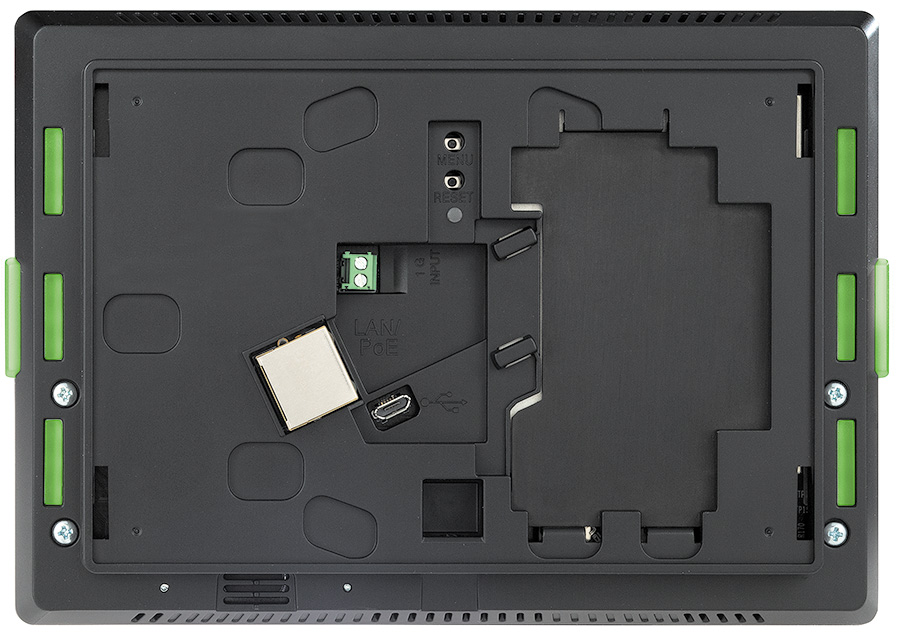 具有 1024x600 的分辨率和 24 位色深的 7" 電容式觸摸屏 — 色彩鮮艷的無邊框玻璃顯示屏提供更加靈敏的控制