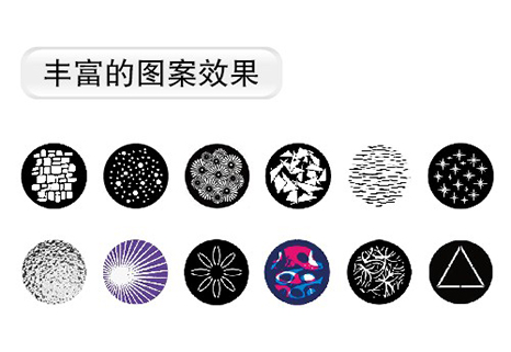 可雙向變速旋轉(zhuǎn),與其它圖案組合可產(chǎn)生水紋、火焰等特殊效果