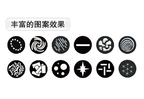 1個(gè)旋轉(zhuǎn)圖案盤:12個(gè)自轉(zhuǎn)圖案+白光