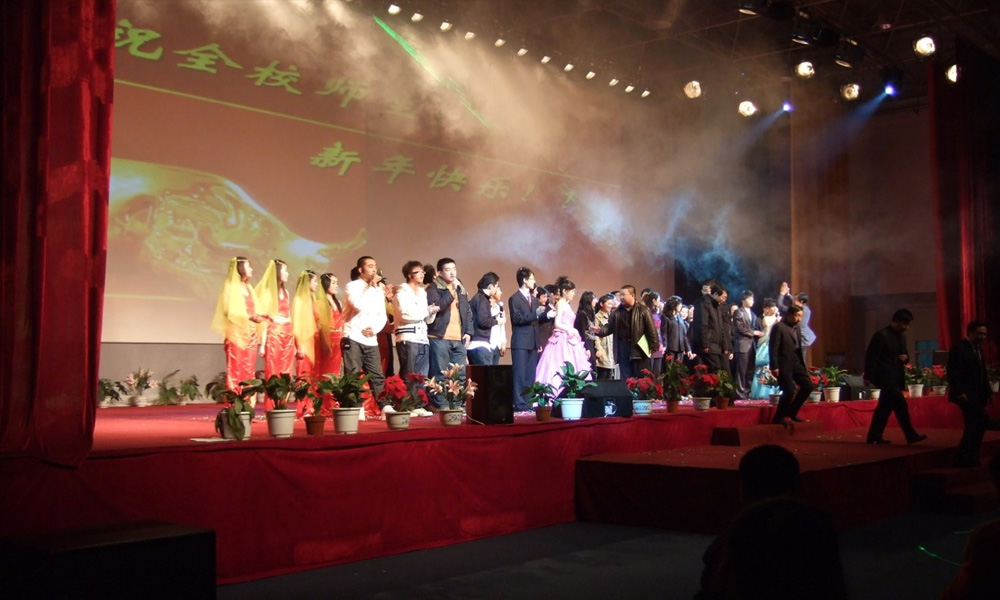 舞臺燈光系統(tǒng):配置有基礎(chǔ)照明燈具和換色器,效果燈具配有8只電腦搖頭燈、激光燈、煙霧 機(jī)、追光燈,滿足舞臺各種舞美要求。
