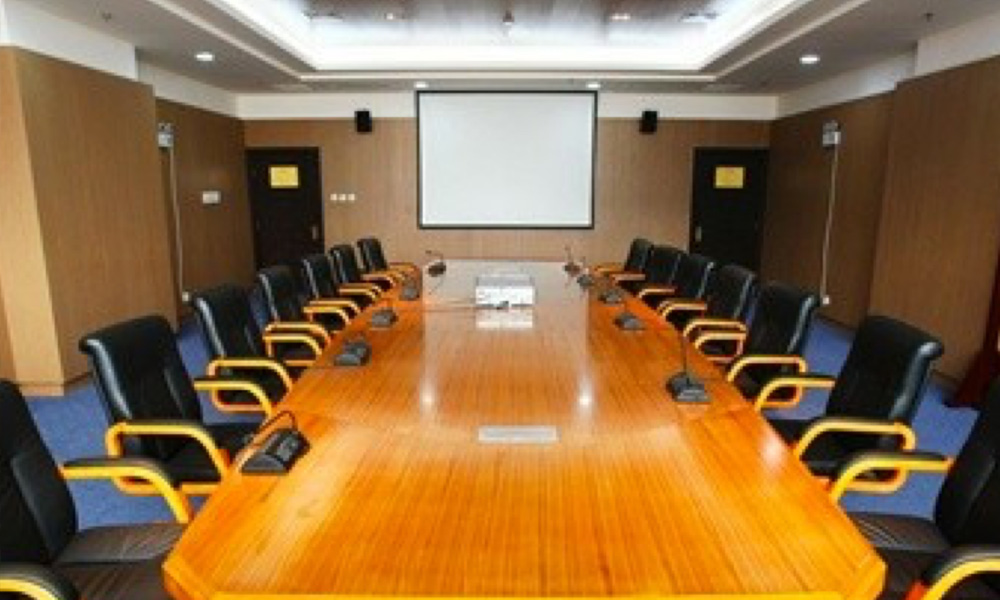 3、圓桌會(huì)議室:滿足討論型會(huì)議、視頻展播、智能化控 制等,配置有:德國Dynacord擴(kuò)聲系統(tǒng)、SONY投影系統(tǒng)、 臺(tái)電數(shù)字手拉手發(fā)言系統(tǒng)、快捷智能集中控制系統(tǒng)。