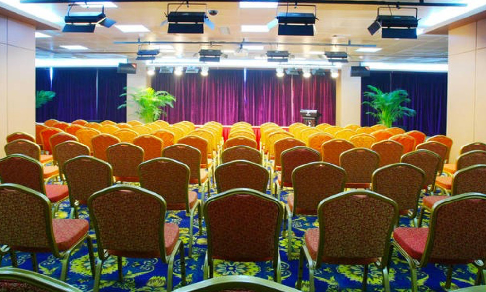 2、多功能廳宴會(huì)廳:滿足宴會(huì)招待、報(bào)告型會(huì)議、教學(xué) 培訓(xùn)等,系統(tǒng)配置有;德國Dynacord擴(kuò)聲系統(tǒng)、燈光系 統(tǒng)、臺(tái)電發(fā)言系統(tǒng)、流動(dòng)大屏幕投影系統(tǒng)。